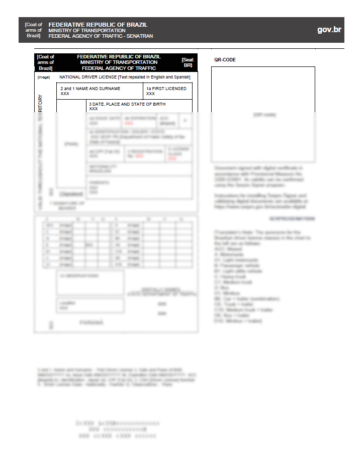 One-page driver license (CNH [Carteira Nacional de Habilitação]) from Brazil. 342 words.